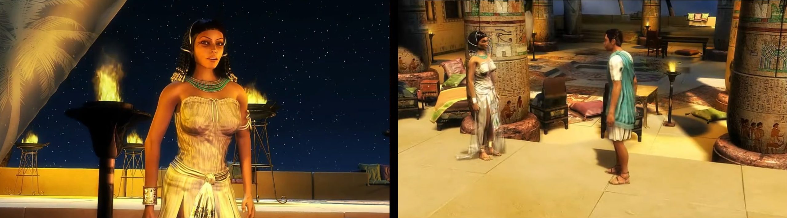 Two of the scenes where the player interacts with Kleopatra VII (Screenshot by author)