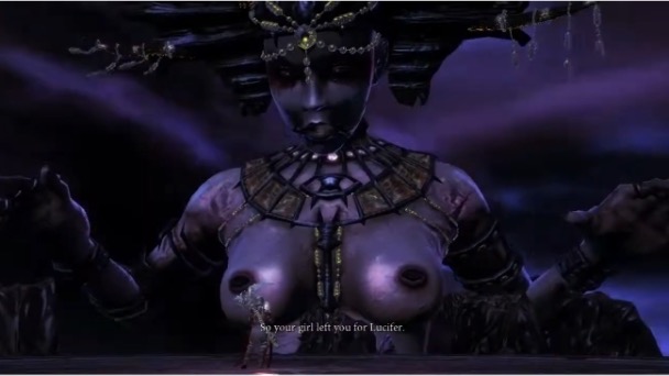 Kleopatra VII is the final boss of the second circle of Hell, Lust, and it is indicated that she and Mark Antony were placed there by Lucifer after their suicides. The player fights her as she summons a “lust storm” and tries to prevent Dante from ascending her “Carnal Tower.” After the player ascends the Carnal Tower, he fights Marc Antony, who a giant Kleopatra aids by smashing her hands on the platform on which the players are fighting. Once the player defeats Antony, Kleopatra attempts to seduce Dante as a last resort, but the player stabs and kills her (see first image).