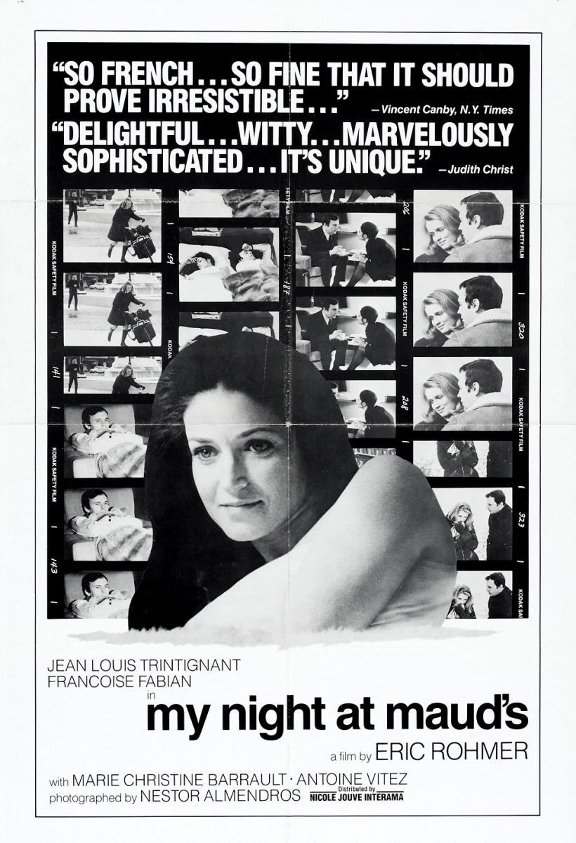3rd entry in the series "Six Moral Tales" by Eric Rohmer. The narrator (Jean-Louis), a devout Catholic, moves to a provincial town and vows to marry Francoise, a pretty blond he notices at mass. Vidal, an old school friend, invites him to visit the recently divorced Maud, and the narrator ends up staying the night, having philosophical discussions in her bedroom. Next morning the narrator engineers a meeting with Francoise. (Filmaffinity)