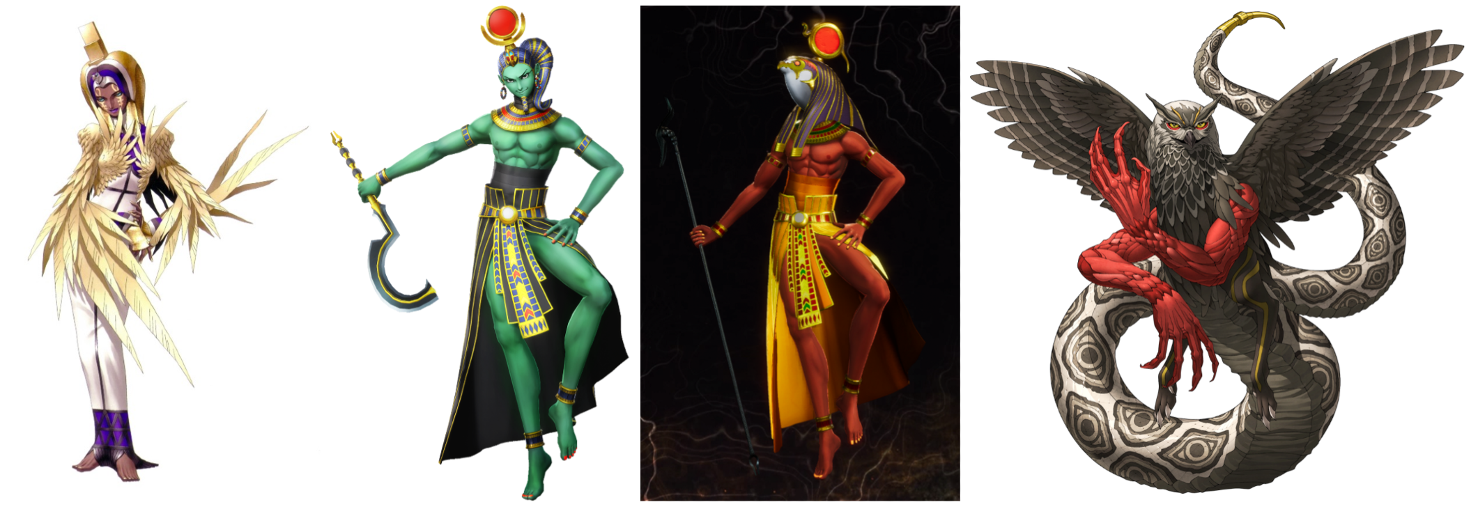 Isis, Khonsu, Khonsu-Ra and Amon in Shin Megami Tensei V (Source: https://megamitensei.fandom.com/wiki/Category:Egyptian_Mythology)