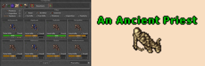 The eight conspirators in their undead forms (left) and an Ancient Priest in his mummy appearance (Source: https://tibia.fandom.com/wiki/)